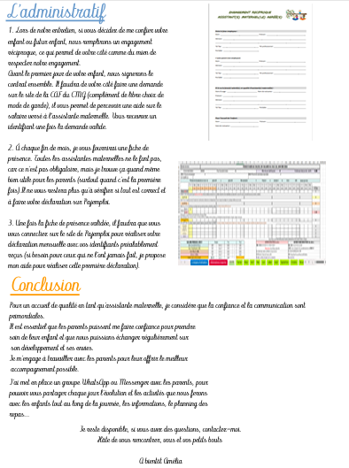Je souhaite que l’accueil soit chaleureux et se passe dans la bonne humeur pour que votre enfant et vous même vous sentiez en confiance.
